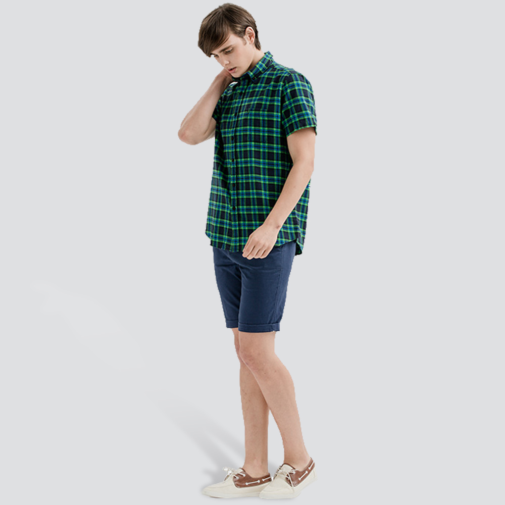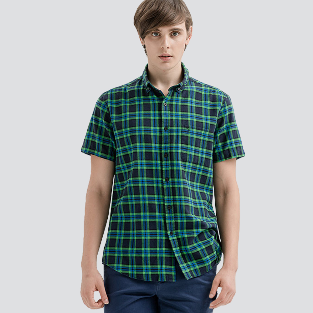 水洗格紋襯衫-深綠