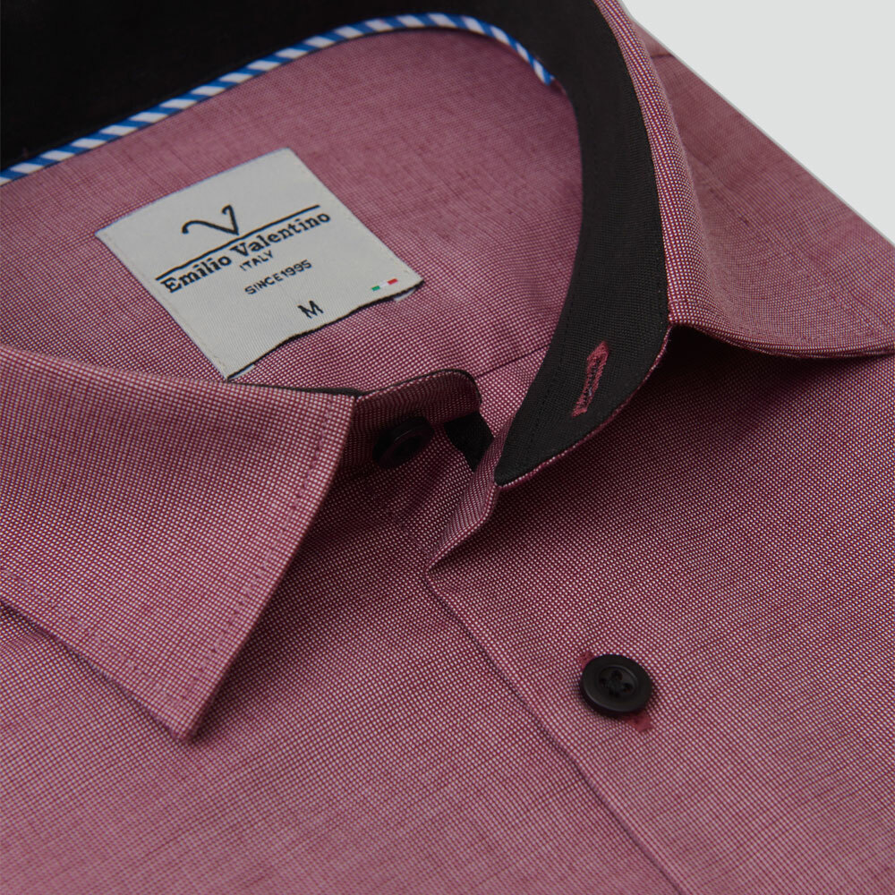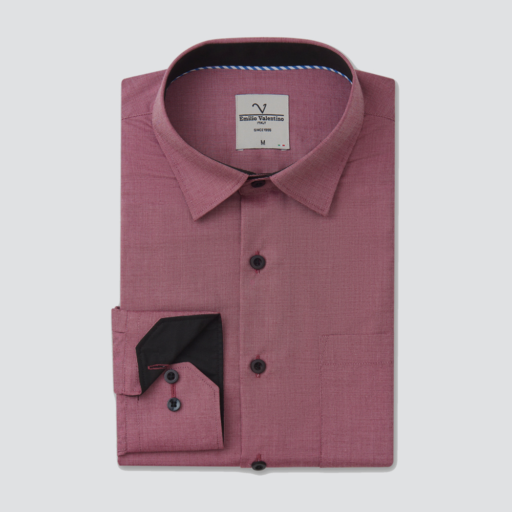 嫘縈混紡長袖襯衫-紅