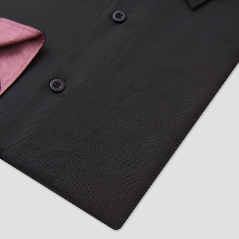 嫘縈混紡長袖襯衫-黑