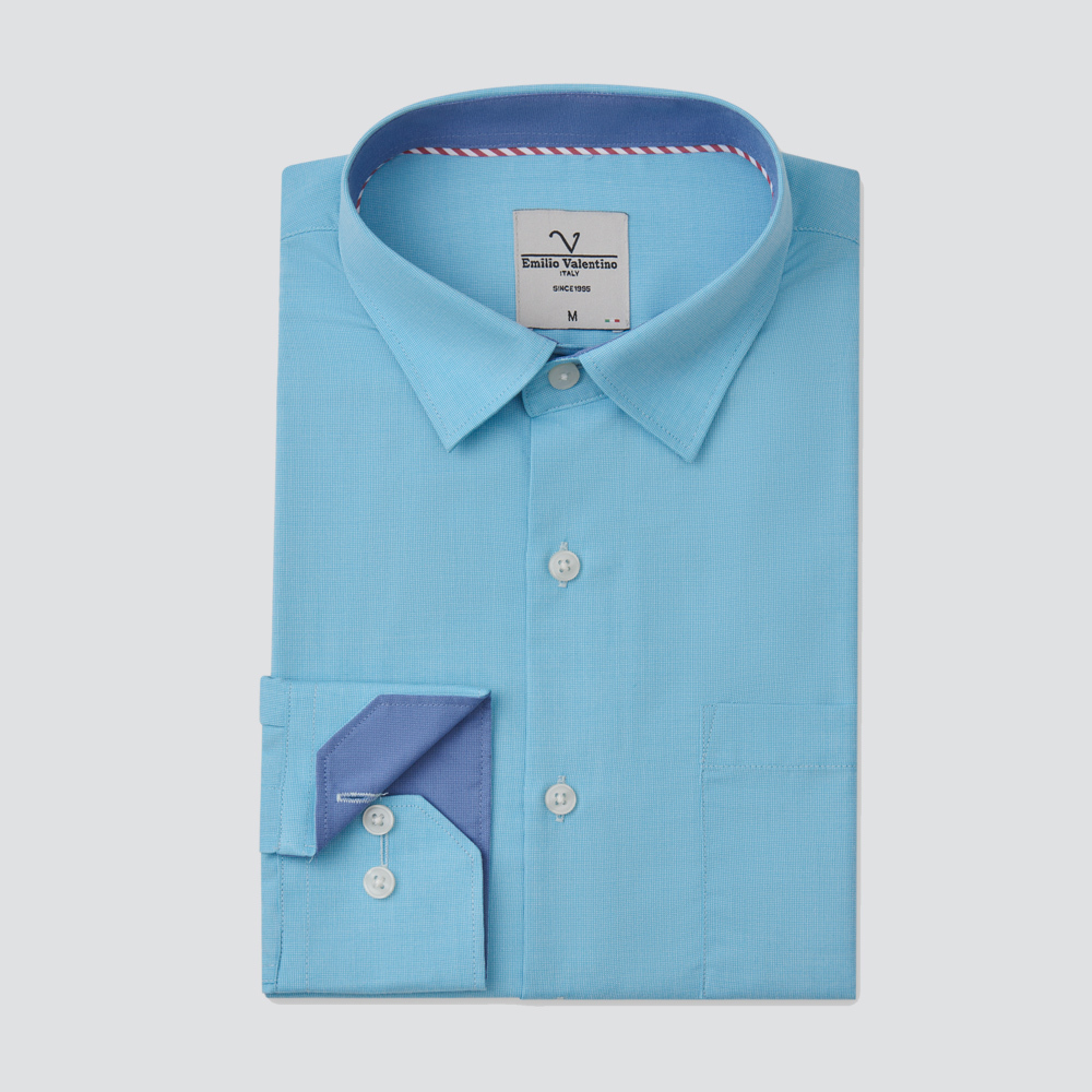 嫘縈混紡長袖襯衫-水藍
