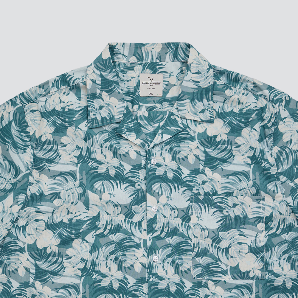 古巴領短袖花襯衫-綠
