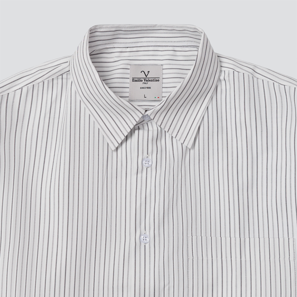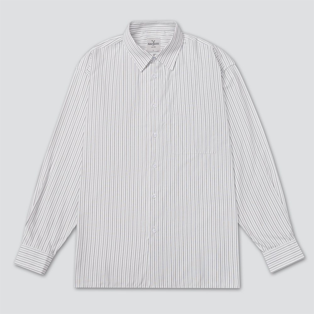 寬版休閒長袖襯衫-白條