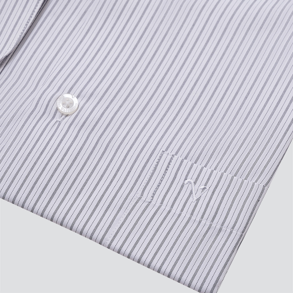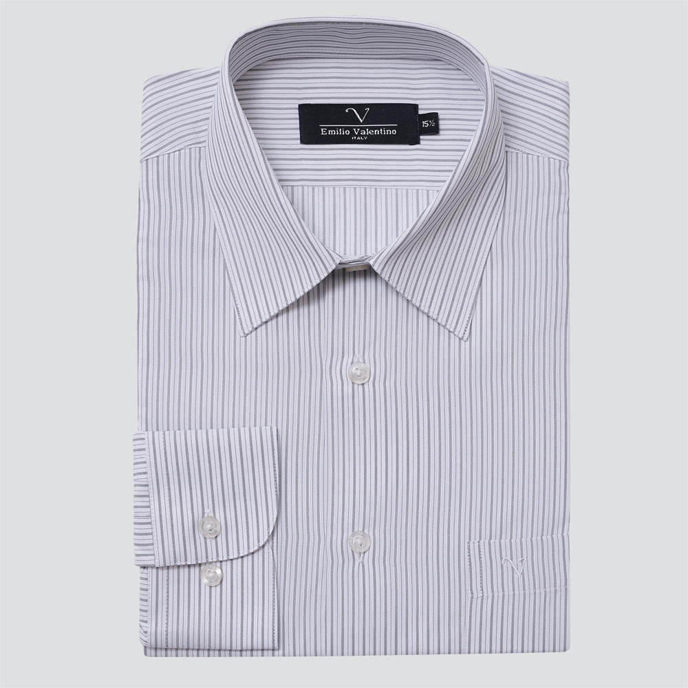 經典條紋長袖襯衫-灰條