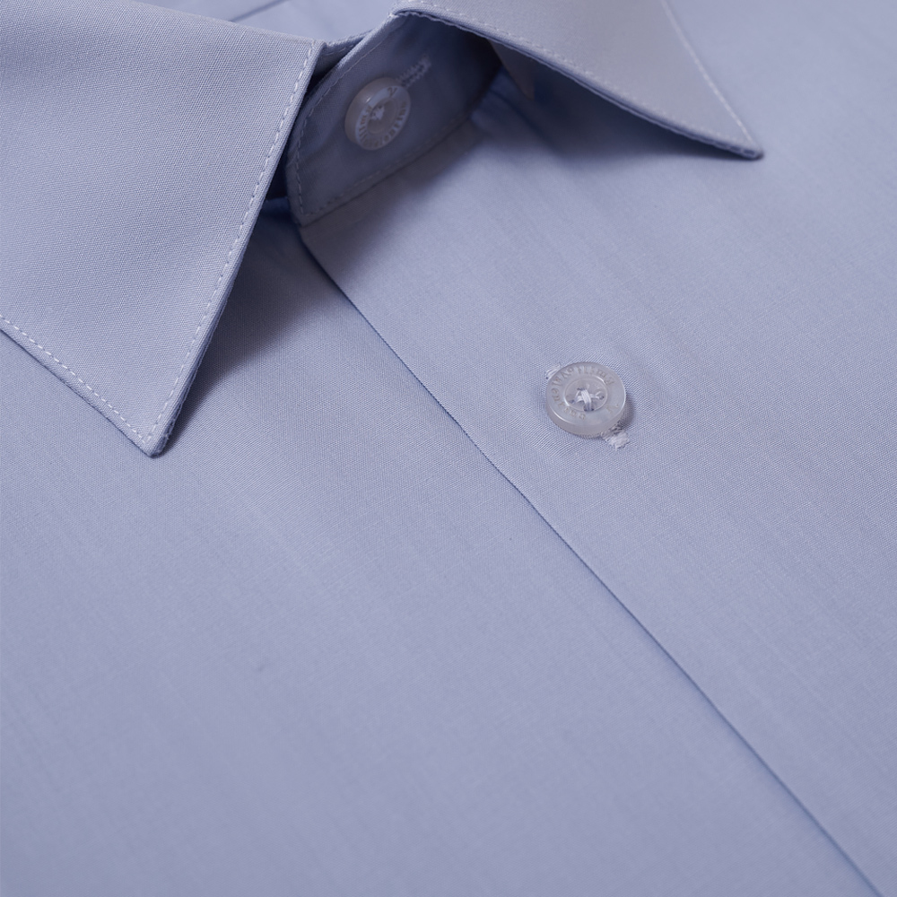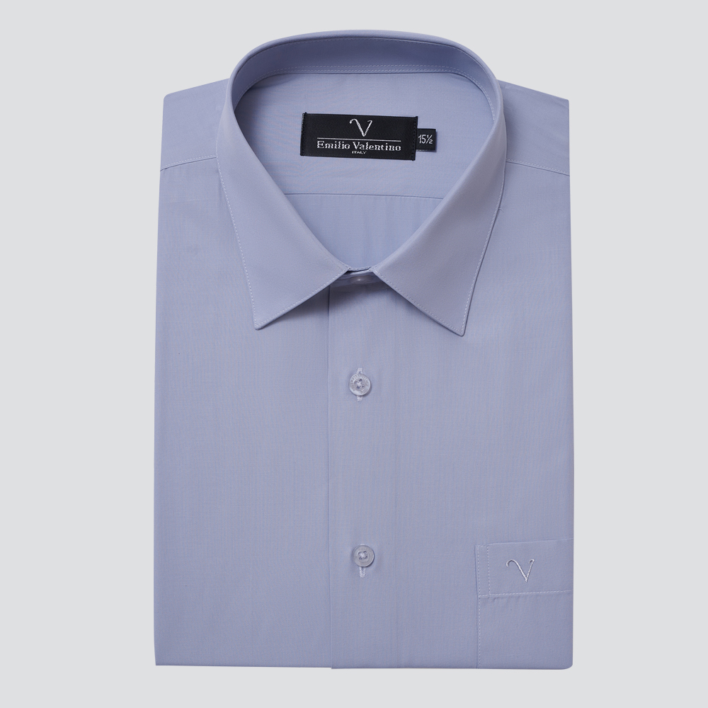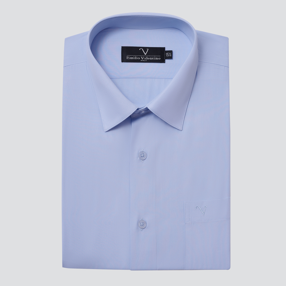 仿天絲素面短袖襯衫-藍