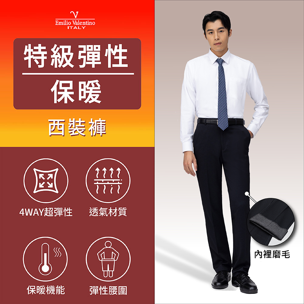 特級彈性保暖平口西褲-黑