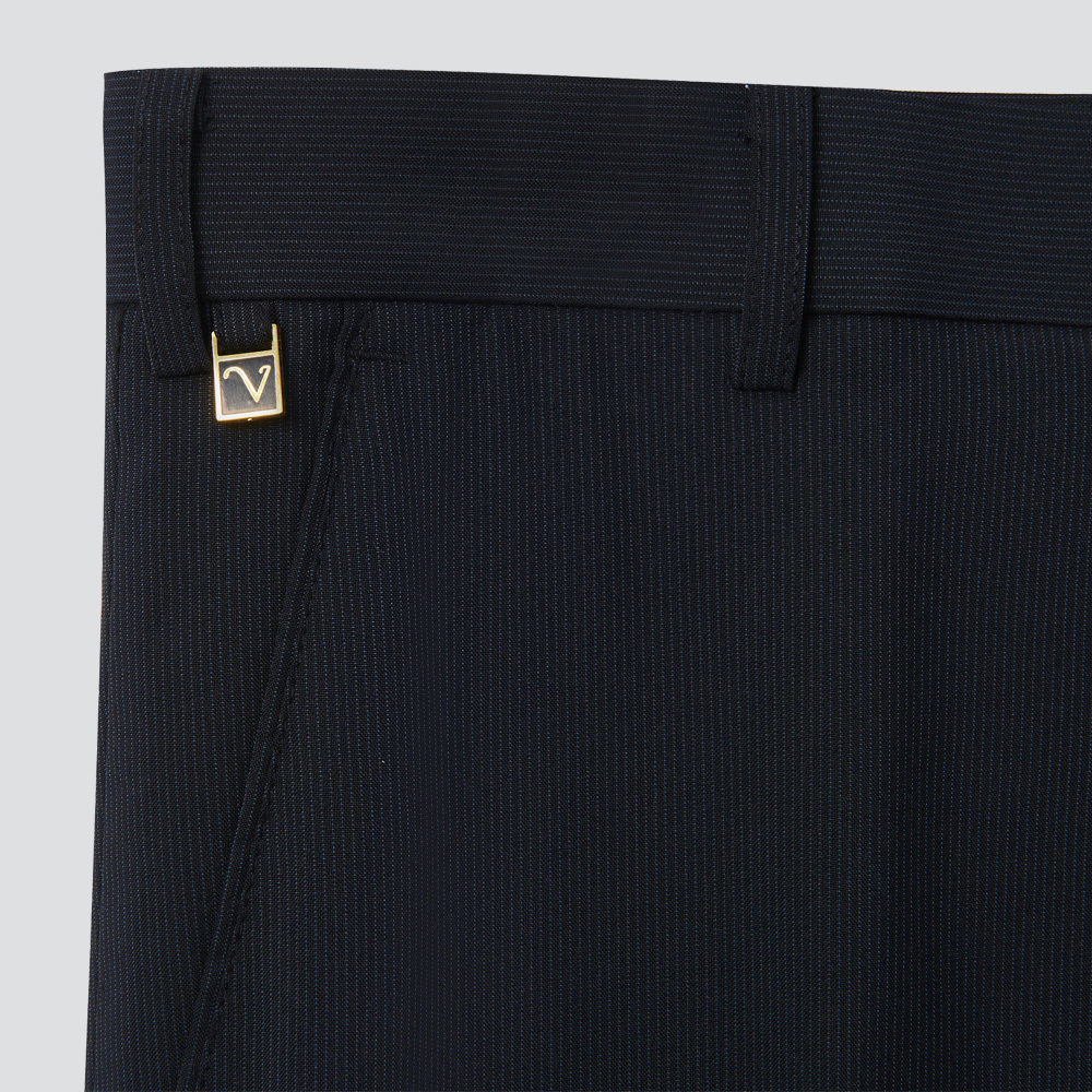 吸濕排汗條紋平面西裝褲-藍